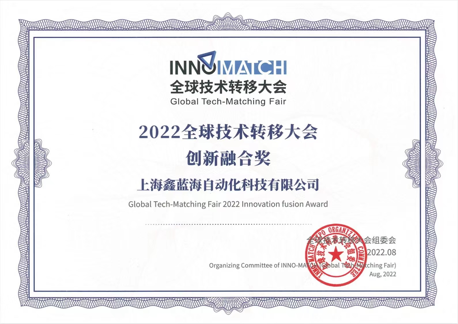 • 8月28日,鑫藍海在2022全球技術(shù)轉(zhuǎn)移大會上,成功獲得了“創(chuàng)新融合獎”。