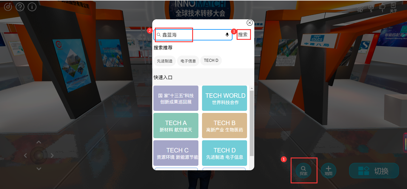 3. 點擊搜索圖標,檢索框輸入鑫藍海,點擊搜索即可。