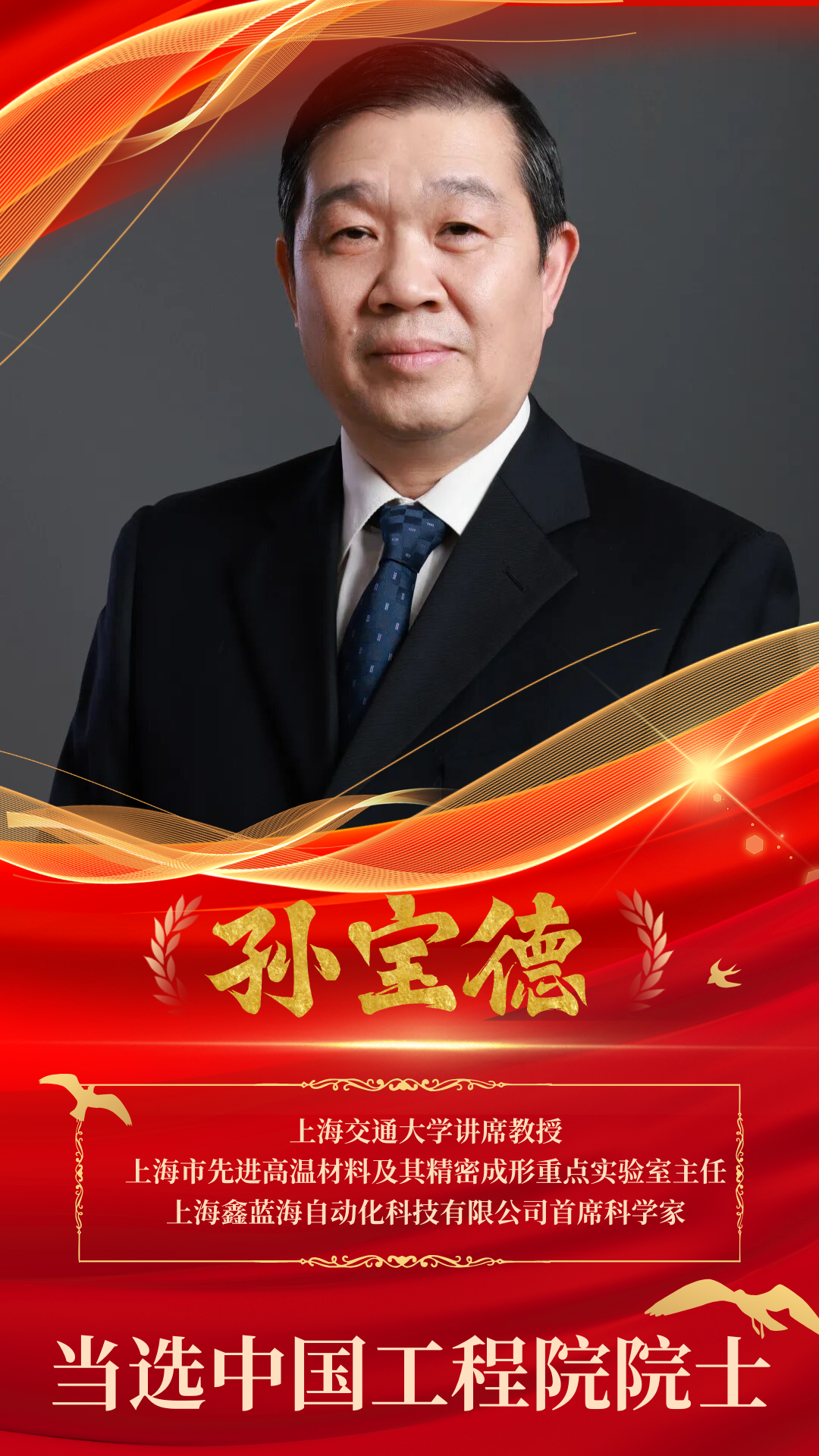 2025年11月21日,中國(guó)科學(xué)院和中國(guó)工程院公布2025年院士增選當(dāng)選名單。上海交通大學(xué)講席教授、上海市先進(jìn)高溫材料及其精密成形重點(diǎn)實(shí)驗(yàn)室主任、上海鑫藍(lán)海自動(dòng)化科技有限公司首席科學(xué)家孫寶德當(dāng)選中國(guó)工程院院士。鑫藍(lán)海全體同仁第一時(shí)間致以熱烈的祝賀,向這位推動(dòng)我國(guó)高端精密鑄造技術(shù)突圍的領(lǐng)軍者致以崇高敬意!